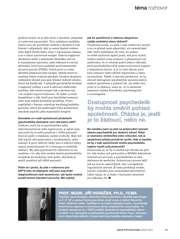 V únorovém čísle časopisu Moje psychologie vyšel hezký rozhovor s jedním ze zakladatelů Psyonu, prof. MUDr. Jiřím Horáčkem, Ph.D., FCMA. Tématem byla psychedelika a jejich léčebný potenciál.