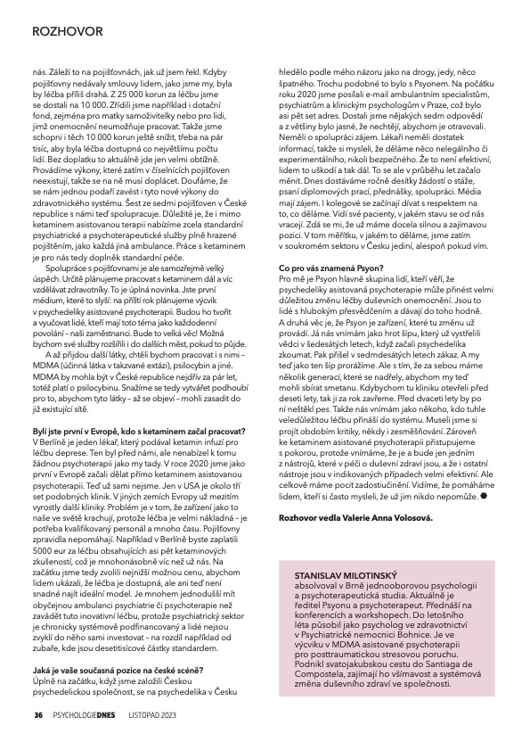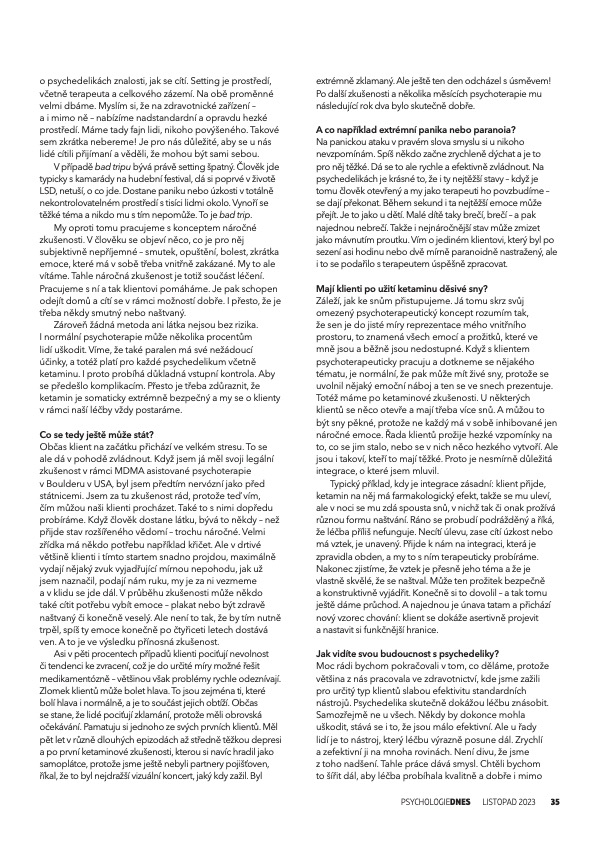 V rozhovoru se mluví nejen o minulosti a budoucnosti Psyonu, ale také o velkém léčebném potenciálu psychedelik, o překonávání předsudků i o tom, proč mohou mít lidé s užíváním psychoaktivních látek špatné zkušenosti.
